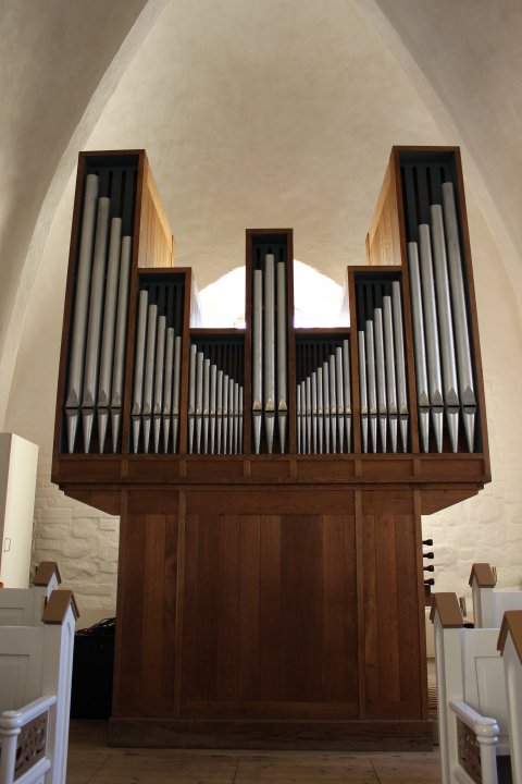 Pibeorglet har 7 stemmer, og er bygget i 1950 af Starup & Søn.
